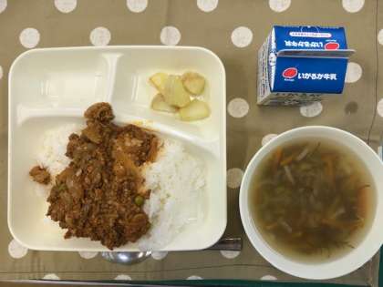 5月13日(月) 本日の献立 公開日 2024/05/13 更新日 2024/05/13 お知らせ 今日の献立は、・タコライス ・もずくのスープ ・焼きじゃが ・牛乳 です。 もずくは、ホンダワラなどの海藻にくっついて育ちます。「藻につく」から「もずく」と呼ばれるようになりました。1月〜3月ごろに採れます。 今日のスープは、「もずくのスープ」に使っています。 いいね(0)