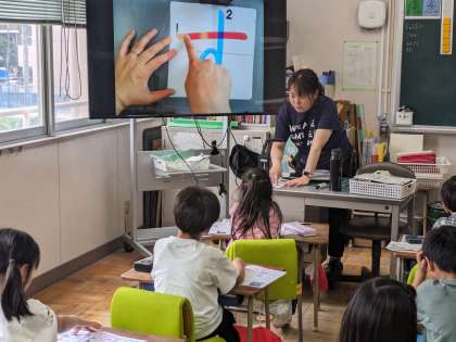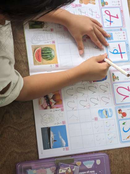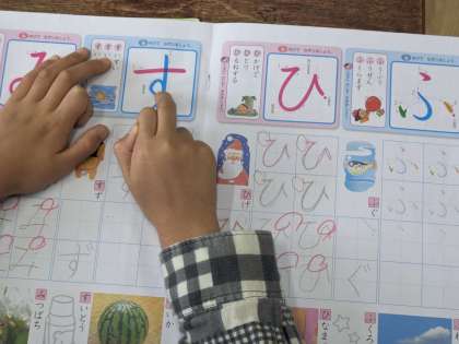 国語。ひらがなの学習に意欲的に取り組んでいます。丁寧に書けています。