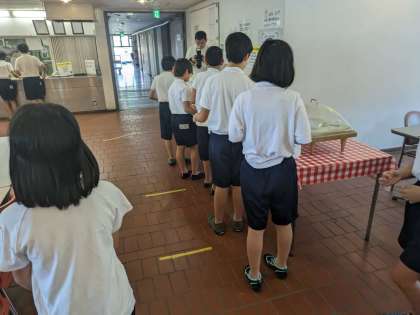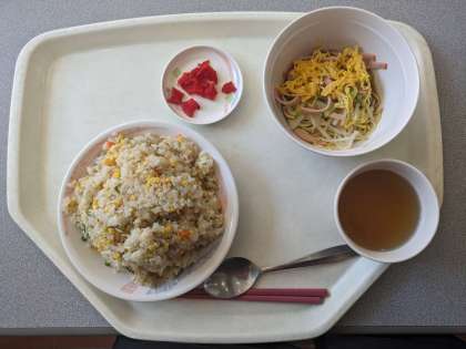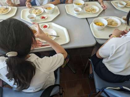 カッター訓練でおなかがすきました。お昼ご飯いただきます。