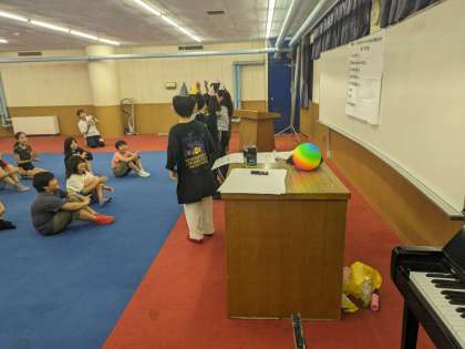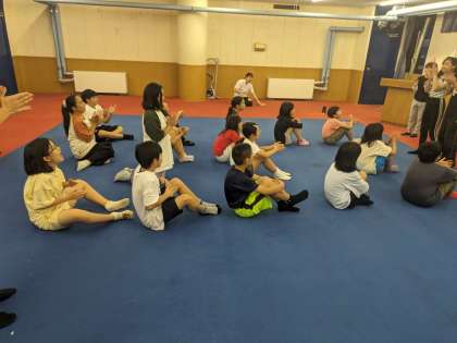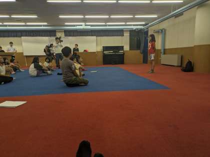 夜のレクリエーションがはじまりました。はじめのジェスチャーゲーム。