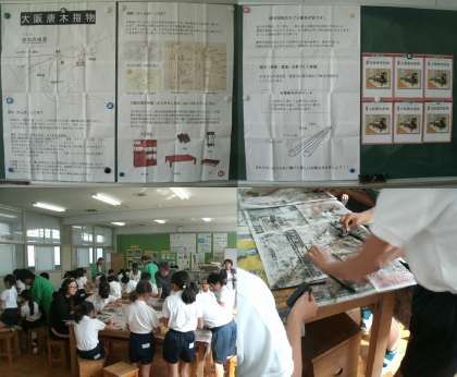 社会科学習等との関連で大阪唐木指物協同組合の方に来ていただき、4年生・5年生の児童が唐木材のお箸をペーパーで「研磨」するという体験学習に取り組みました。子どもたちは大阪唐木指物協同組合の方に教えていただきながら、一生懸命お箸を磨いていました。最後にできあがったお箸を袋に入れていただくと、子どもたちはとても嬉しそうな表情を浮かべていました。