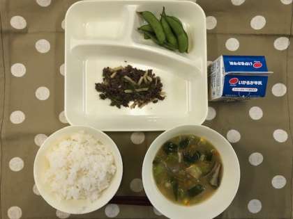 6月17日(月) 本日の給食 公開日 2024/06/17 更新日 2024/06/17 お知らせ 今日の献立は、・ご飯 ・チンジャオニューロウスー ・中華みそスープ ・枝豆 ・牛乳 です。 いいね(0)