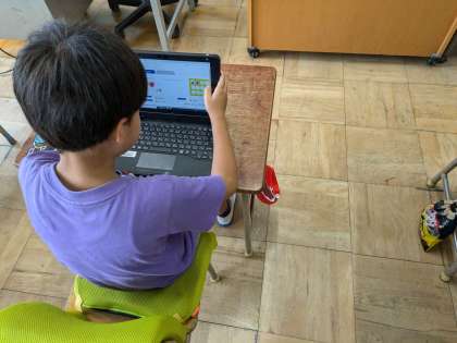 パソコンを使って学習です。扱い方も慣れたもの、すいすい学習を進めています。