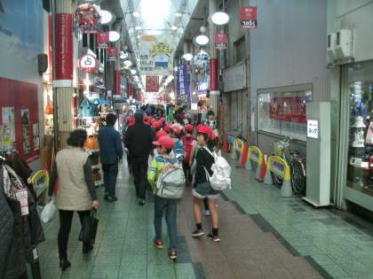 「くらしの今昔館」を出た後は、天神橋筋商店街の中を通って商店街の様子を見学したり、扇町公園で遊んだりしました。楽しく、充実した社会見学になりました。