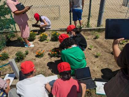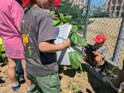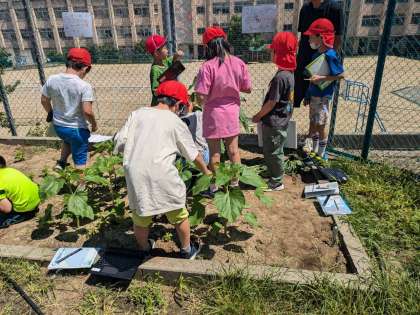 理科。育ているひまわり、マリーゴールドなどの観察をしました。