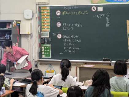 8月29日 学習の様子 4年生 公開日 2024/08/29 更新日 2024/08/29 お知らせ 算数の学習です。筆算の仕方について自分の考えをまとめ、友だちと考えを交流しています。パソコンも日常的に使って考えの共有に役立てています。 いいね(0)