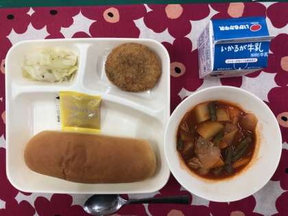 9月2日(月) 本日の給食 公開日 2024/09/02 更新日 2024/09/02 お知らせ 今日の献立は、・コッペパン ・アプリコットジャム ・チキンレバーカツ ・ケチャップ煮 ・キャベツのバジル風味サラダ ・牛乳 です。 いいね(0)