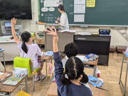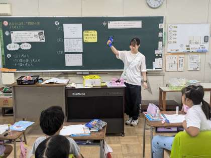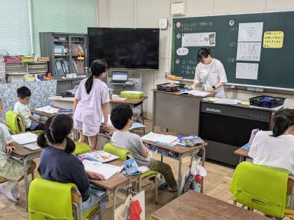 算数。割り算の学習です。あまりに注目して文章題の割り算の答えを求めました。