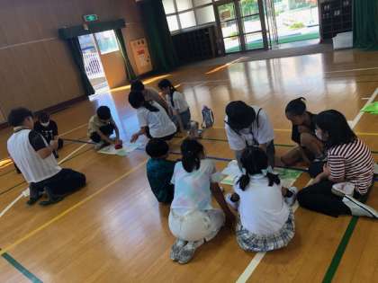 5.6時間目に、NPO法人大阪災害ボランティアの皆さんを講師にお招きして、救命救急講習会を行いました。最初に救命救急の手順をご指導いただき、その後グループに分かれて練習しました。子どもたちは、「あっぱくんライト」という子ども用の心肺蘇生トレーニングキットを使って、練習しました。