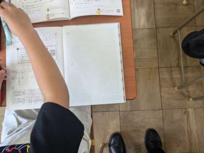 算数「倍数」の学習です。教育実習生の授業研究をしています。