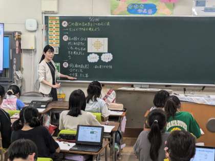 9月18日 学習の様子 4年生 1 公開日 2024/09/18 更新日 2024/09/18 お知らせ 算数の授業研究会を行いました。◯の数を多様の考え方で求める学習です。図や式、言葉で自分の考えを表しました。 いいね(0)