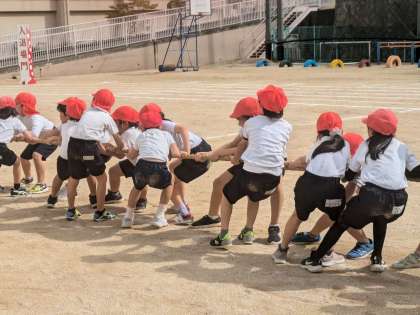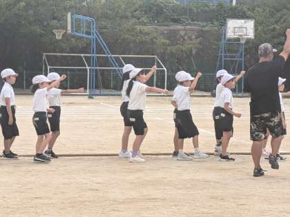 3.4年生の団体競技は綱引きです。練習ですが、見ていても力が入ります。金塚小学校の運動会で綱引きをするのは久しぶりです。