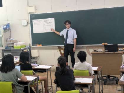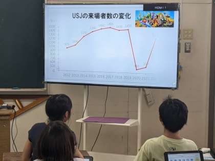 算数の学習の様子です。分割授業で授業研究を行いました。データを読み取り、その結果を考察します。