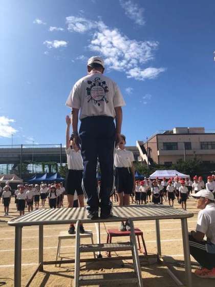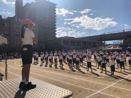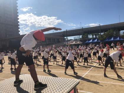 児童代表の言葉、運動会の歌に引き続き、プログラム1番 合同体操です。
