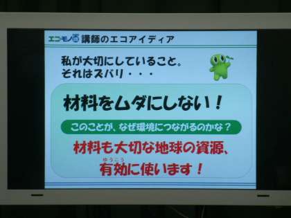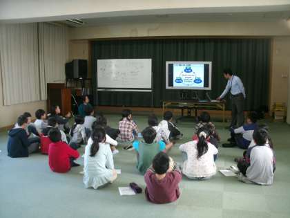 12月3日(木)、パナソニックの方を講師にお招きし、社会科・環境学習に関わる出前授業をしていただきました。工業生産を支える人々の「役割」と「エコアイディア」のことを中心に、人々の努力や環境問題への工夫についてお話していただきました。社会科の工業に関する学習と関連しているので、子どもたちの理解もたいへん深まりました。子どもたちも積極的に話し合ったり、質問したり、たいへん意欲的に学習に取り組むことができました。