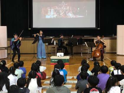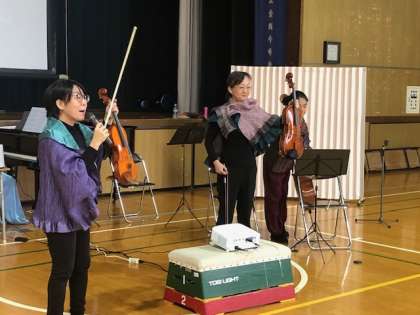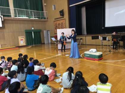 2時間目に、阿倍野区役所音楽体感事業として、アンサンブルサヴィーナさんをお招きし、色々な音楽を聞かせていただきました。