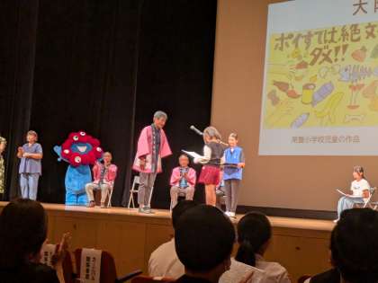 阿倍野区民センターで、放置自転車防止ポスターの表彰がありました。入賞した児童のうち金塚小学校からは3名が表彰されました。おめでとうございます。