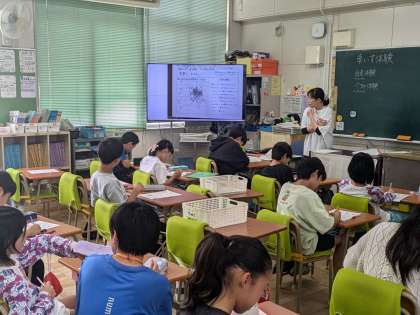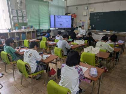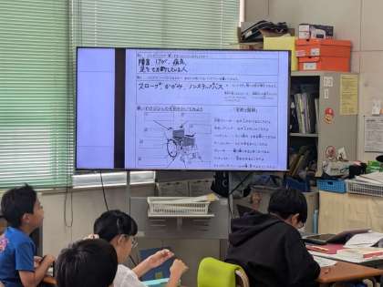 明日の車椅子体験にむけて、バリアフリーや車椅子について事前学習をしています。