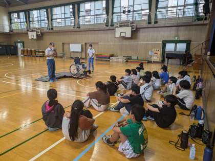 10月23日 学習の様子 5年生 公開日 2024/10/23 更新日 2024/10/23 お知らせ 車椅子体験学習 大阪市心身障がい者リハビリテーションセンターからたくさんの講師の方に来ていただき、車椅子体験をさせていただきました。わずかの段差でも乗り越えることがたいへんなことや車椅子を補助するときに気をつけることなど、体験を通じてたくさんのことを学ぶことができました。講師の皆様、本当にありがとうございました。 いいね(0)