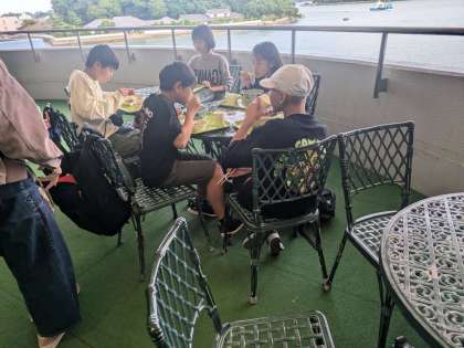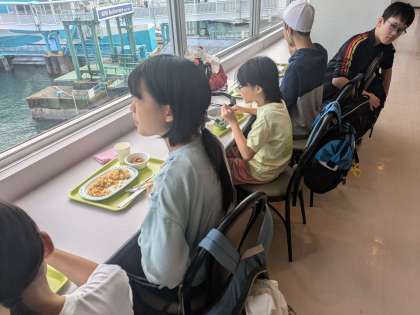 修学旅行 2日目 公開日 2024/10/25 更新日 2024/10/25 お知らせ かなり早めの昼ごはん。朝しっかり食べたのに、もうおなかがすいたようです。水族館ではまだ1時間ほどありますが、、、、、。子どもたちの代謝の良さに驚くと同時に、羨ましい気持ちも。 いいね(0)