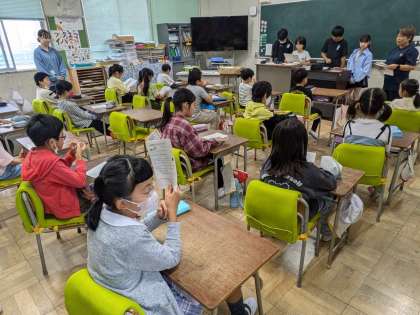 全校遠足にむけて、わくわくグループでの話し合いをしました。先生から全校遠足の予定や持ち物等の説明を聞いたあと、グループのめあてや当日のならび方などを確かめました。木曜日の集会で校内ミニオリエンテーリングをして、全校遠足当日に備えます。