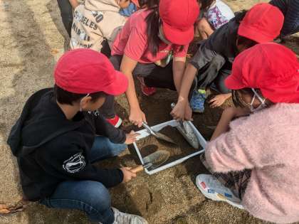 理科の学習です。流れる水のはたらきについて、実験を通して学びます。