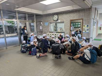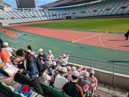 学校を予定通り出発し、ヤンマースタジアム長居に到着しました。