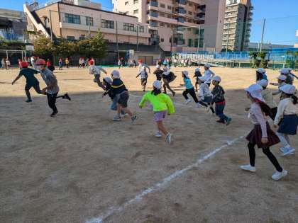 今日の集会は、ふえおにでした。朝から元気いっぱい活動しています。