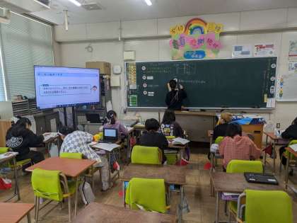 算数の少人数学習の様子です。直線の交わり方について学習しています。平行についても学習します。