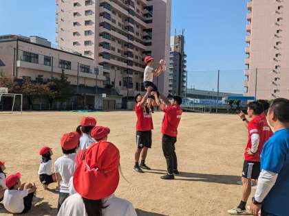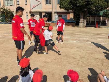ラグビー出前授業の様子です。4年生に続いて、3年生にも授業をしていただきました。笑顔が絶えない楽しい学習でした。レッドハリケーンズの選手の皆様、ありがとうございました。