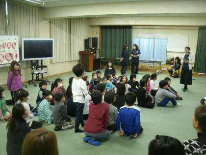12月11日(金)、「いのちのわ あべの」の方々、4組の親子の皆様方、妊婦の方のご協力を得て、『いのちの授業』を行いました。命の誕生の不思議や胎児の成長についてのお話を聞いたり、乳児や妊婦の方とふれあったりしました。