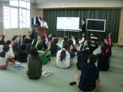12月16日(水)、あべの市税事務所の方に来ていただき、「わたしたちのくらしと税」というテーマで税金についてのお話をしていただきました。税にはどのような種類があるのか、税は何に使われているのか等について教えていただきました。「町をつくろう」シートにシールを貼って自分が住んでみたい町をつくる作業や税に関するクイズを通して教えていただくことで、子どもたちはたいへん関心を持って学習に取り組むことができました。また、子どもたちがイメージしやすいように1億円のレプリカを見せてくださいました。
