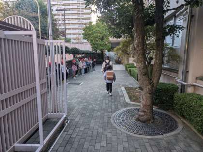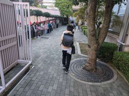 朝のあいさつ。2年生、元気いっぱいのあいさつです。