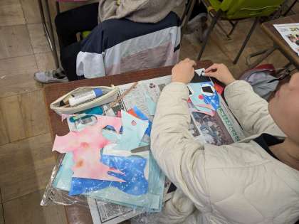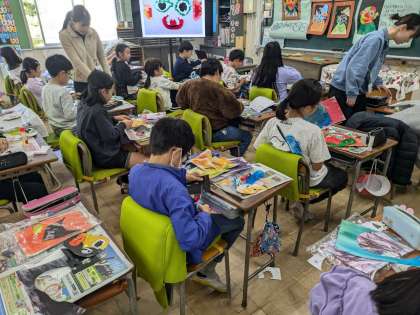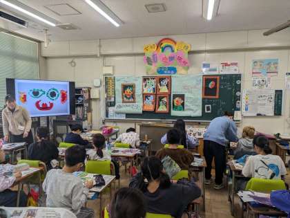 図工「真夜中のピエロ」の制作です。作品展で展示予定です。お楽しみに。