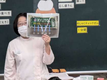 歯科校医先生、歯科衛生士の先生によるフッ化物s洗口。