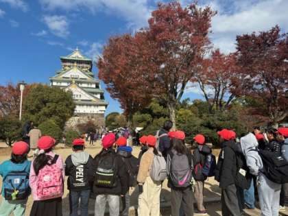 お弁当の後、大阪城を見ました。これから、ピースおおさかに向かいます。