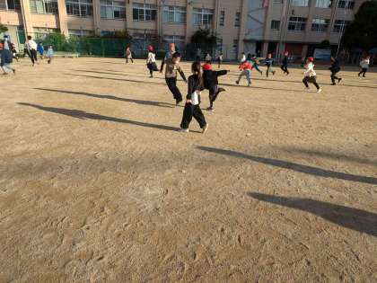 しっぽ取りをしました。広い運動場を走り回って、体がぽかぽかしました。