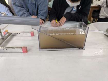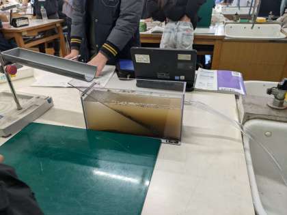 理科の学習で、水のはたらきによる地層のでき方について実験をしました。