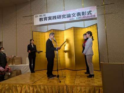 本校教員と元本校教員が本校での実践について執筆した教育実践研究論文が最優秀賞を受賞しました。お二人の先生、誠におめでとうございます。
