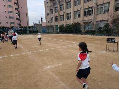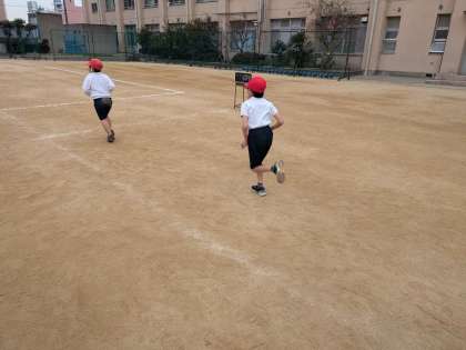 体育の学習。駆け足をがんばりました。