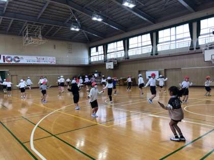 前あやとび、後あやとび、二重とびと軽々ととぶ子どもたち。前回教えていただいたことで、子どもたちの技術が確実にアップしています。