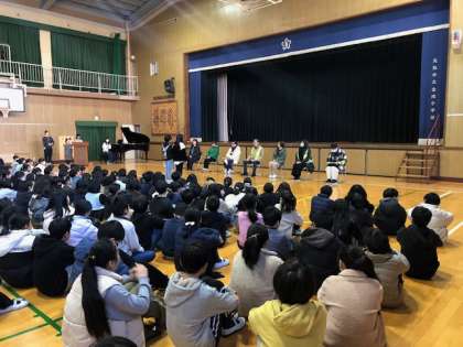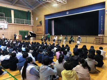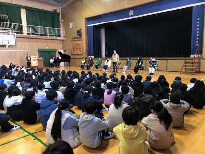今日の児童集会は、金塚子ども見守り隊の方をお招きし、感謝の気持ちを伝えました。