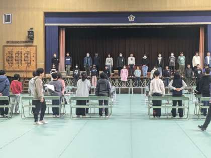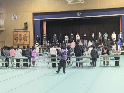 3月になり、卒業式の練習も、5.6年生合同になりました。