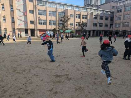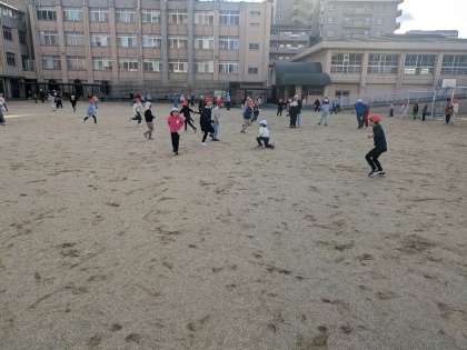 久しぶりのお天気です。こおりおにをして、元気いっぱい運動場をかけまわりました。