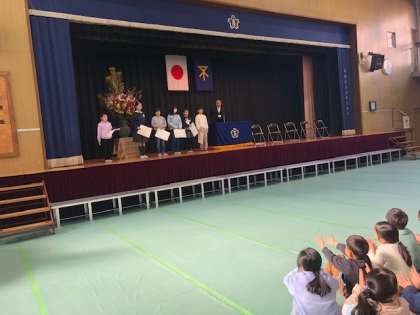 漢字検定の表彰がありました。6人の児童が表彰されました。おめでとうございます。