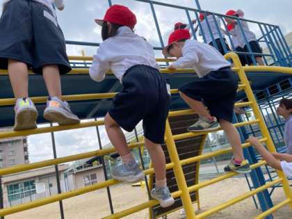 4月11日 1年体育 公開日 2025/04/11 更新日 2025/04/11 お知らせ 1年生の体育は体をいっぱい動かします。 鬼ごっこは鬼がどんどん増えていくので、逃げるのが難しくなります。 追いかけている間ずっと笑顔が輝いていました。その後はコンビネーションや雲梯に移動しました。1年生は遊びの中で体を動かす感覚を身につけていきます。何より楽しそうな様子が最高です! いいね(0)