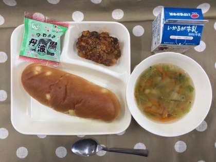 4月11日 本日の給食 公開日 2025/04/11 更新日 2025/04/11 お知らせ 今日の献立は、・おさつパン ・じゃがいものミートグラタン ・レタスのスープ ・ソフト黒豆 ・牛乳 です。 いいね(0)
