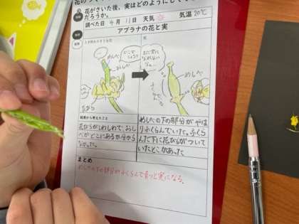4月11日 5年 理科 公開日 2025/04/11 更新日 2025/04/11 お知らせ 5年生は花のつくりを学習しています。アブラナを分解すると様々な部分に分かれることがわかりました。花の下のふくらみを開くと小さな球が…「種や〜」と驚きの声が上がりました。学習と感動がつながると忘れない経験になります。すてきな学びの時間になりました。 いいね(0)
