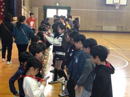 4月14日 入学を祝う会 公開日 2025/04/14 更新日 2025/04/14 お知らせ 最後に、お祝いのプレゼントを6年生から1年生に贈りました。 1年生もお礼の言葉を上手に言うことができました。 終わりの言葉は、代表児童が心を込めて1年生と2年生以上の学年に伝えることができました。 いいね(0)