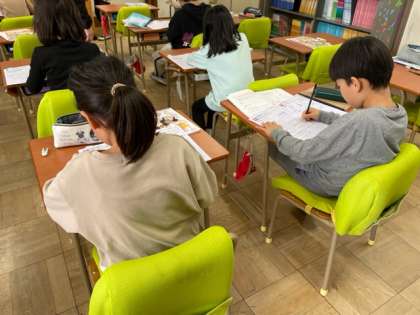 4月15日 4年算数 公開日 2025/04/15 更新日 2025/04/15 お知らせ 4年生の算数では「大きい数のしくみ」に取り組んでいます。いよいよ学習に「1兆」の位が登場しました。数が大きくなればなるほど難しく、漢数字と算用数字の変換は特に頭を悩ませます。それでもじっくりと最後まで問題に取り組む姿が素晴らしいですね。 いいね(0)
